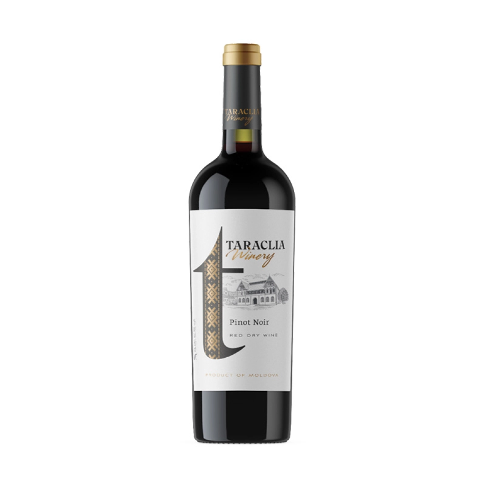 Coleção Pinot Noir Taraclia. Vinho tinto seco, obtido a partir de uvas selecionadas da clássica casta europeia Pinot Noir, colhidas manualmente em plantações no sul da Moldávia, distrito de Taraclia, na comuna de Salcia. Apresenta uma atraente cor vermelho escuro com reflexos rubi. Apresenta aromas de cerejas, framboesas, complementados por finas notas de mirtilo, morango e cravo. Na boca é complexo, aveludado, com taninos macios e final longo e agradável. Ideal para filés de borrego, porco ou vaca, frango, cogumelos e queijos curados.
